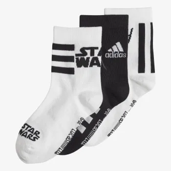 Οι Star Wars κάλτσες χαρίζουν άνεση στα παιδιά είτε βλέπουν τις ταινίες στον καναπέ είτε προπονούνται σαν Jedi. Αυτή η συσκευασία περιλαμβάνει 3 ζευγάρια κάλτσες με βαμβάκι και σχέδια από κάποιον πολύ, πολύ μακρινό πλανήτη. Το rib τελείωμα κρατά αυτές τις παιδικές adidas κάλτσες στη θέση τους.
